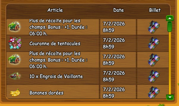 Ce matin j'ai fait dix tours de roue festive à 8h59 , j'ai gagné 2 fois récolte champs +1 pendant 6h. mais je ne récolte que 5 plantes avec chutney au lieu de six. Bug ou pas?